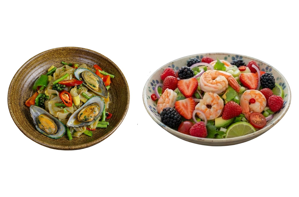 Stir-fried rice noodles with mussels, fresh chillies, garlic and a bold mix of Thai herbs full of wok-fired flavour.